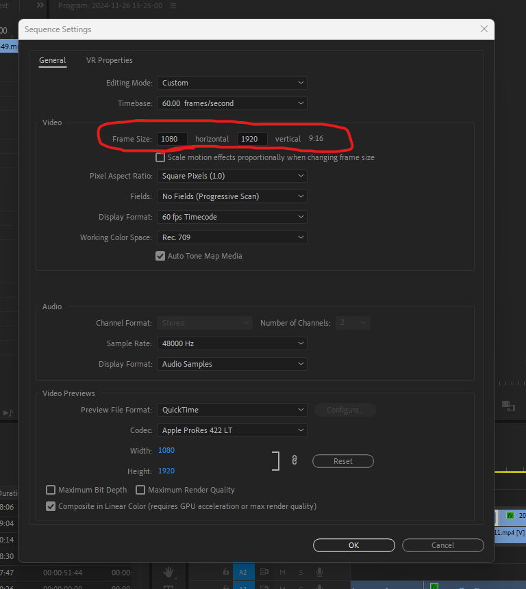 There is a lot to take in in this pop up, all you need to do is change frame rate, set This To your desired size.