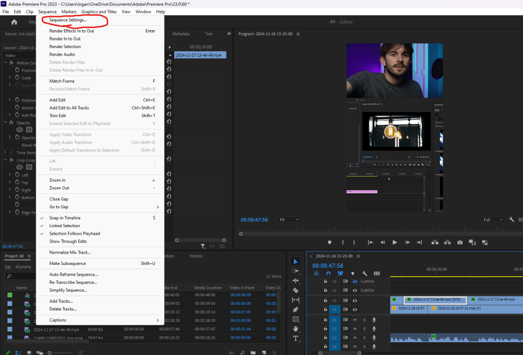In your White Bar at the top of Premiere Pro, You Will find A few Menu’s, File, Window ect, Press Sequence.